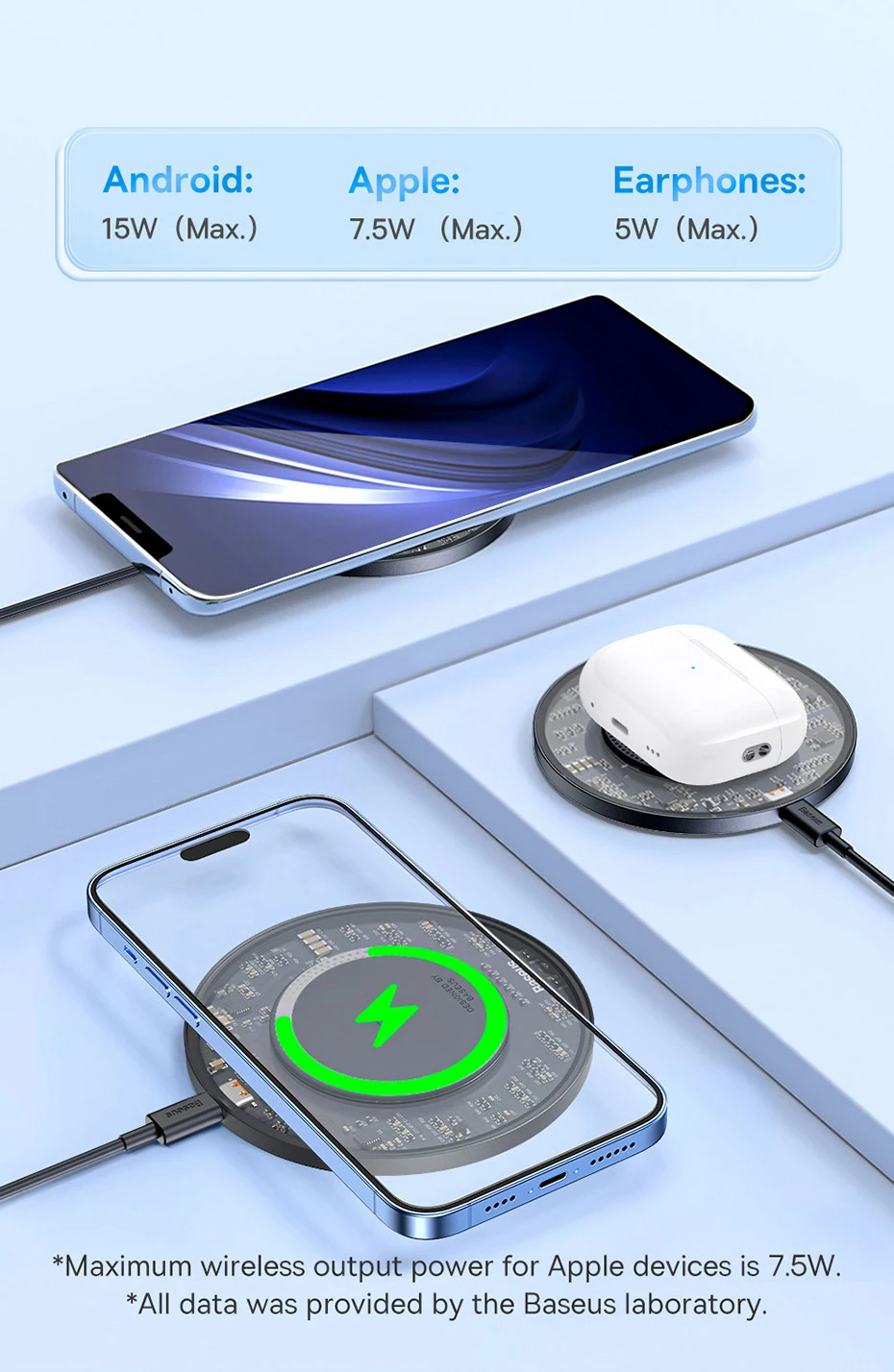 Note: 7.5W for iPhone Series,It is recommended to use the QC3.0 adapter with power of 18W or above