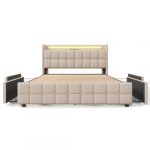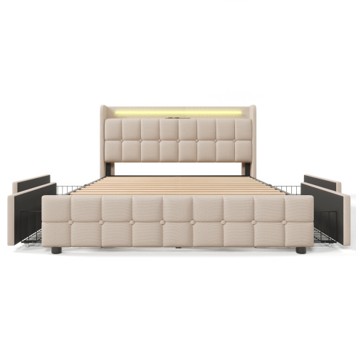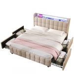 Product Name:Polsterbett mit aufladen USB Ladefunktion Kopfteil und LED-Beleuchtung und 4 Schubladen,Doppelbett 160x200cm Stauraumbetten Bettgestell, Lattenrost aus Holz, Beige (Ohne Matratze)